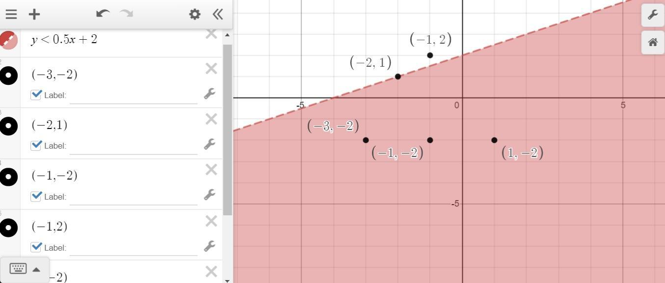 If a ordered pair is a solution of the linear inequality, then the ordered pair must satisfy the inequality. The ordered pair must lie on the shaded are of the solution set
