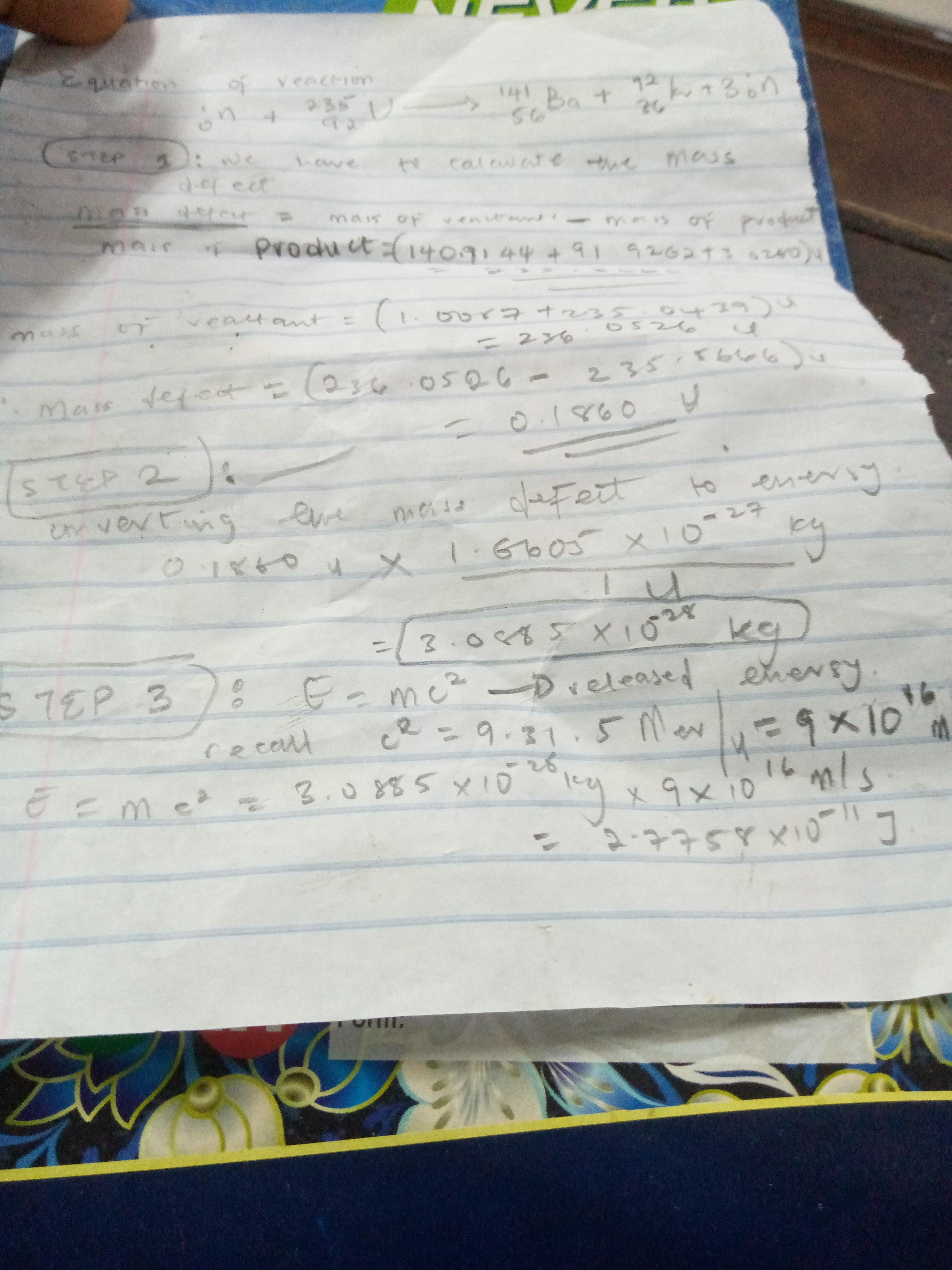 STEP THREE: Calculating energy released . Recall(from the question) c^2= 931.5 Mev/u. This is also equals to 9×10^16 m/s.