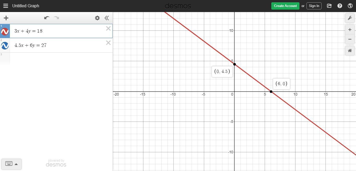 x=6 and y=4.5 for both linear graphs. This means both equations produce similar amounts of turkey and ham . Micheal and Ashley bought same amount of turkey which is 6 pounds.