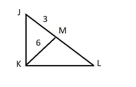 Triangle J K L is shown. Angle J K L is a right angle. An altitude is drawn from point K to point M on side L J to form a right angle. The length of K M is 6 and the length of M J is 3. What is the length of line segment LJ? 9 units 12 units 15 units 18 units