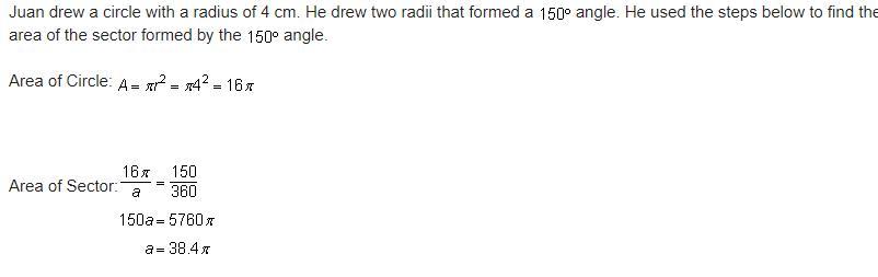 Juan was able to determine that the area of circle = 16\pi.