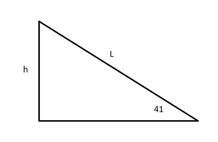 \tan \theta=\frac{L}{h}\\\\L=h\times \tan\theta\\\\L=3.686\times \tan(41)\\\\L=3.2\ m
