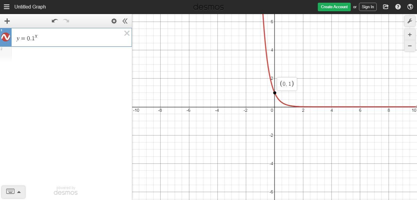 In the equation ; y=0.1^x, a=1, b=0.1