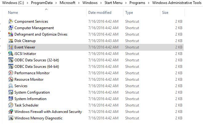 You can see log files and events in the "Event Viewer".