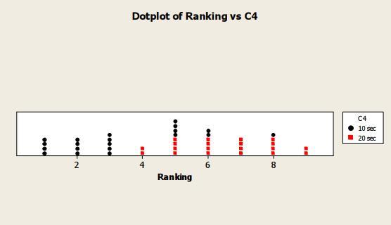 d) We can see this on the figure attached. And we see that the values for the group of 20 seconds are significantly higher than the values for the group of 10 seconds.