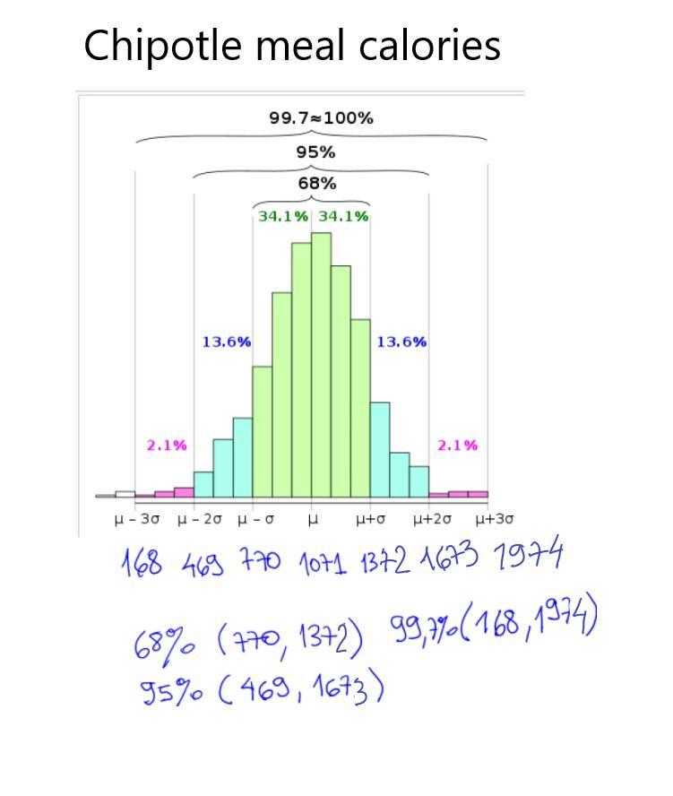 c.. If a particular meal's calorie amount is equal to the 16th percentile of Chipotle meal calorie amounts, how many calories are in the meal?