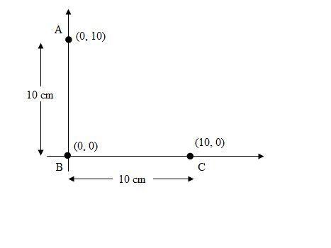 The coin is placed at a distance of 10 cm from the coin B and it is placed along the X-axis. The X-coordinate of any point along the X-axis is the distance of the point from the origin. Therefore, the X-coordinate of the coin C is