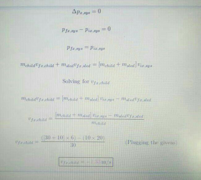 So we can use the conservation momentum principle to find the velocity of the child just after he leaves the sled.