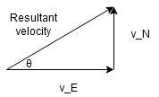 Let us break up the velocity vector into 2 components, one along north (