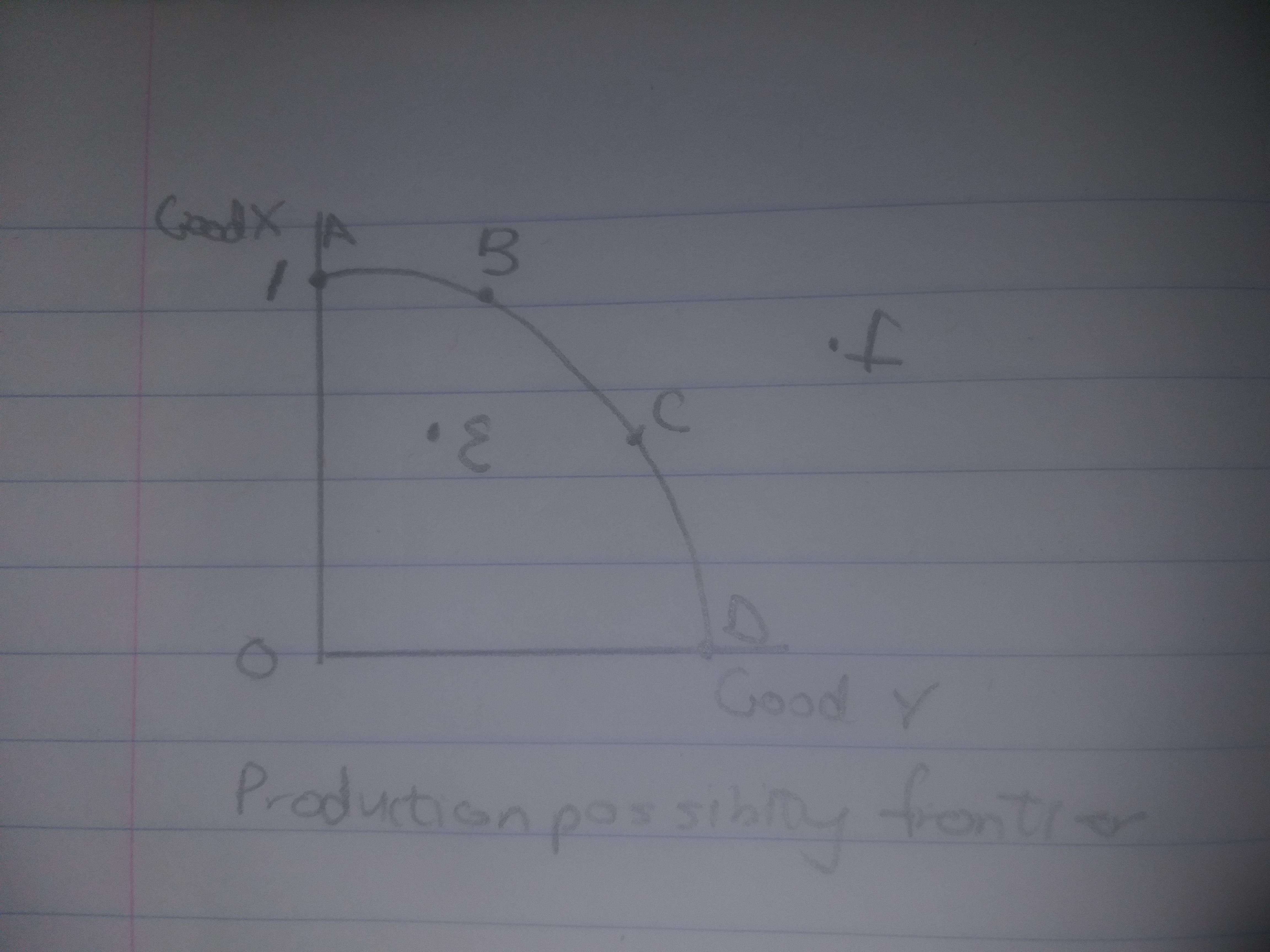 In the attached image, points a,b,c amd d represents production that takes place when resocurces are fully employed.