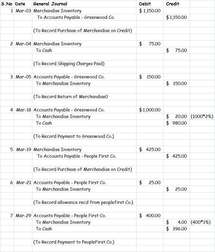 18 Paid GreenWorld for the March 3 purchase, net of the discount and the returned merchandise.