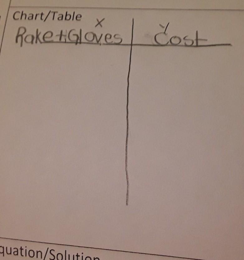 dener spends a total of $300 on both rakes and gloves. Form an equation with r, as the cost of one rake. Then solve the equation.