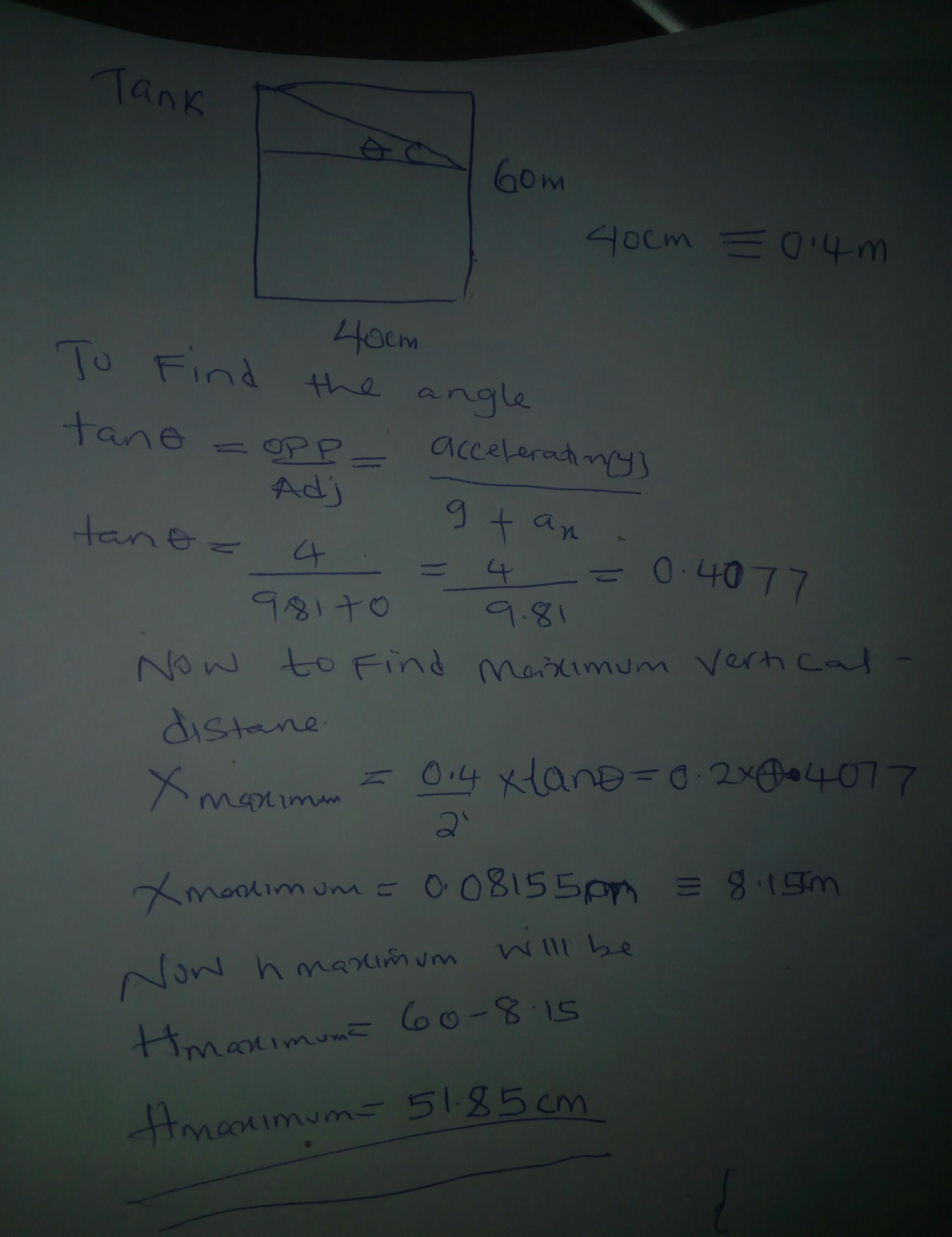 s 4 m/s2. Determine the allowable initial water height in the tank if no water is to spill out during acceleration.
