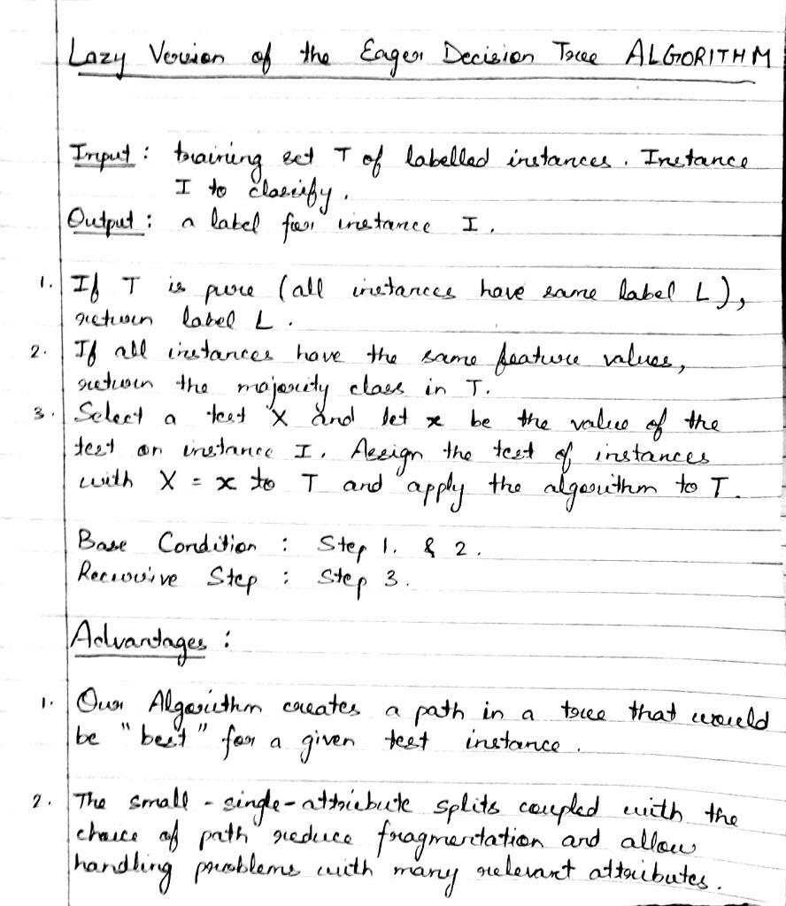 Suggest a lazy version of the eager decision tree learning algorithm ID3. What are the advantages and disadvantages of your lazy