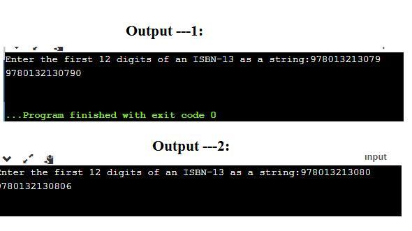 n=input("Enter the first 12 digits of an ISBN-13 as a string:")#defining a varaible isbn for input value