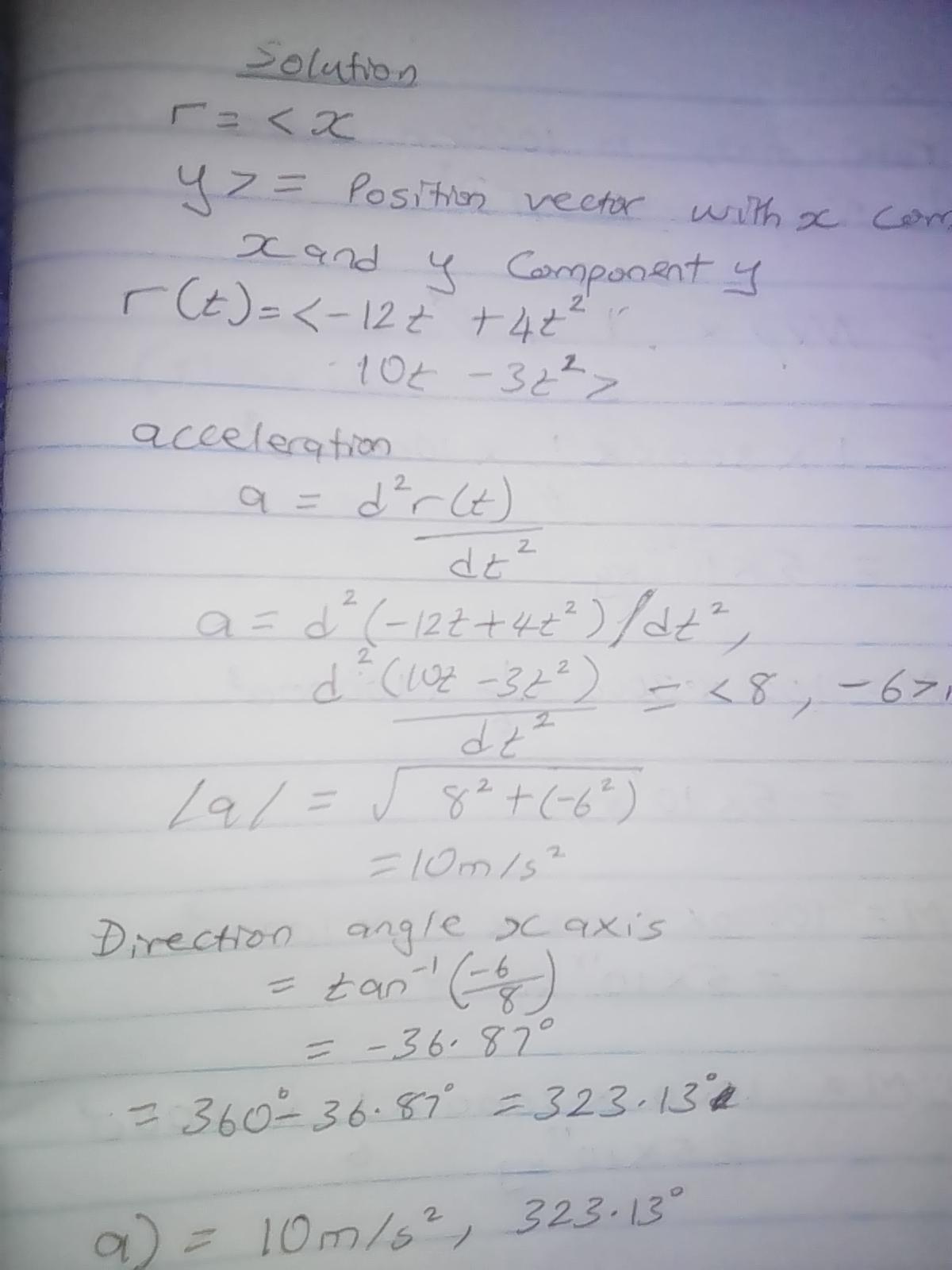 The horizontal coordinates of a Frisbeetm in a strong wind are given by x=−12t+4t2 and y=10t−3t2, where x and y are in meters, a