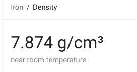 The density of iron is reportedly about 7.874 g/cm³, so the mass of the iron rod is about ...