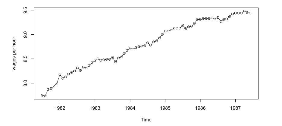 ## lm(formula = wages ~ time(wages) + I(time(wages)^2))