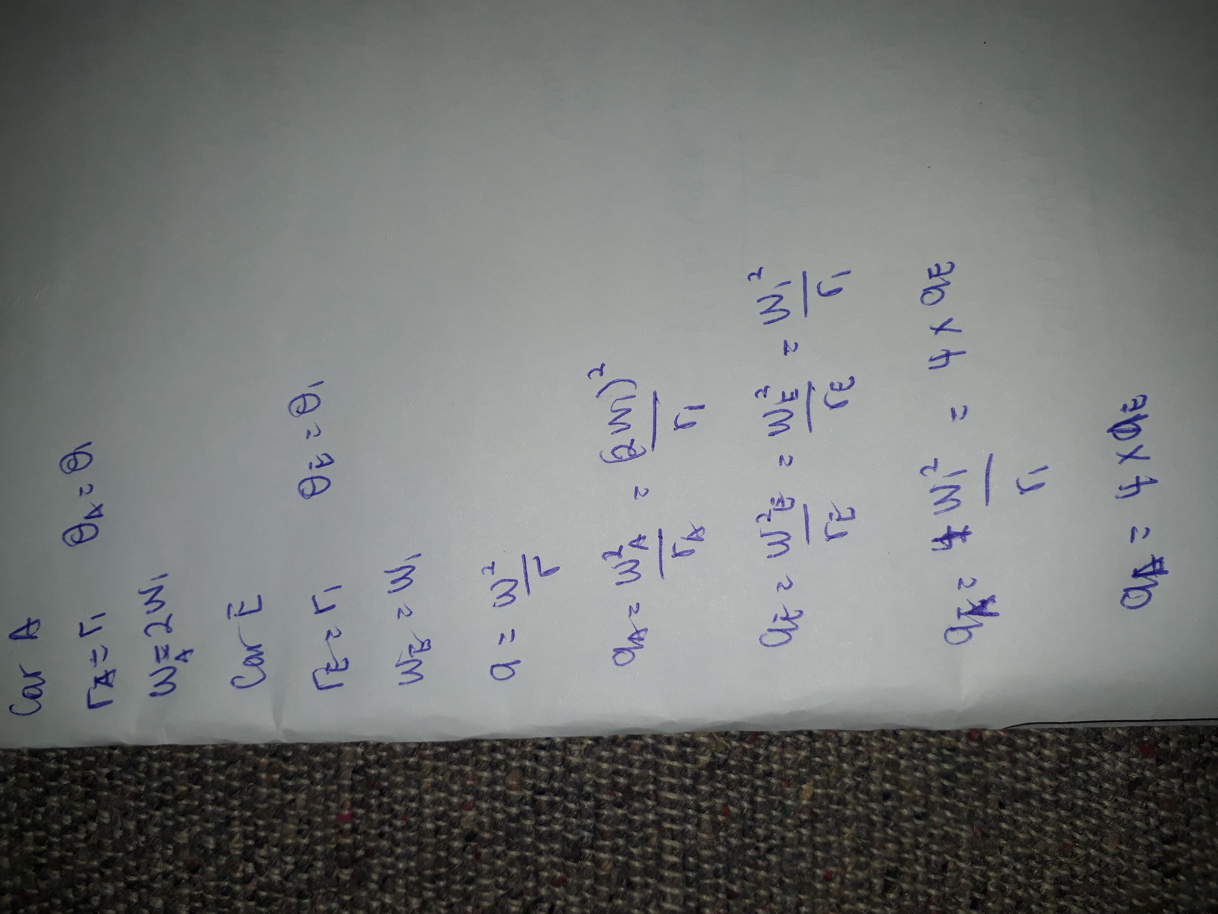 It is notice that the acceleration of the car at point A is four time that of point E.