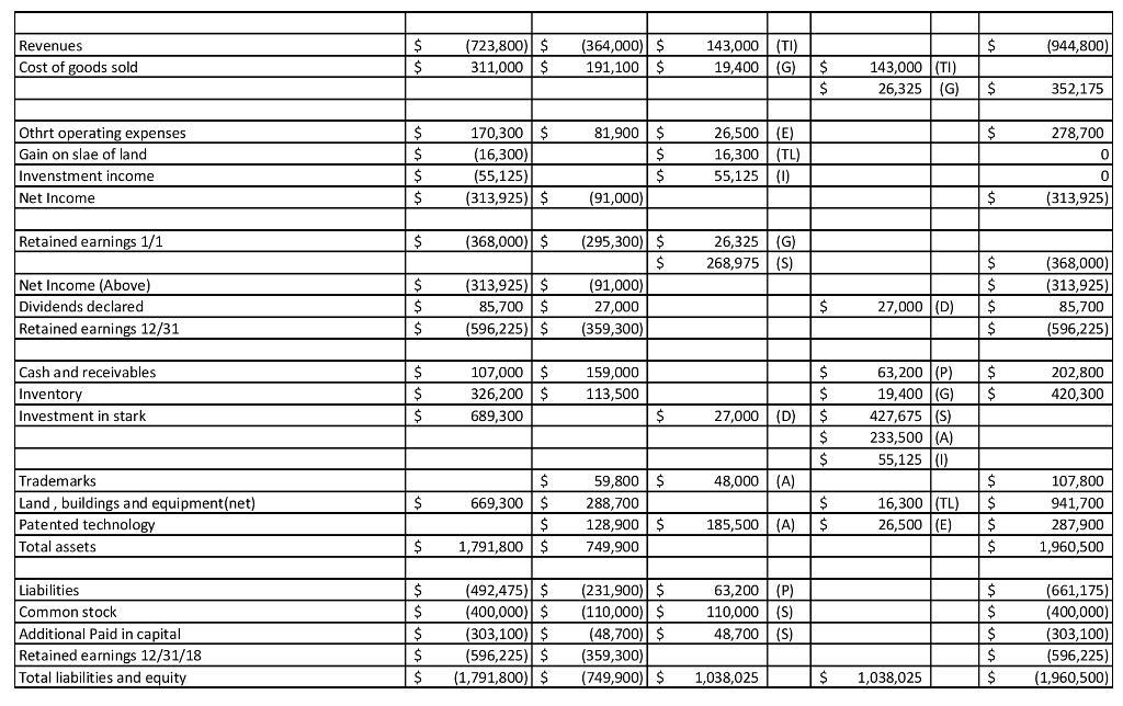 At the end of 2018, Panther and Stark prepared the following statements in preparation for consolidation.