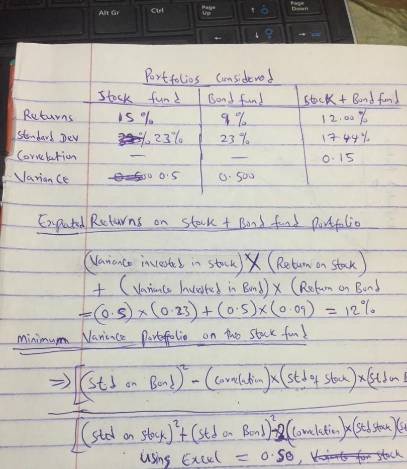 variance for bond fund = 1 - variance for stock = 1 - 0.5 = 0.500