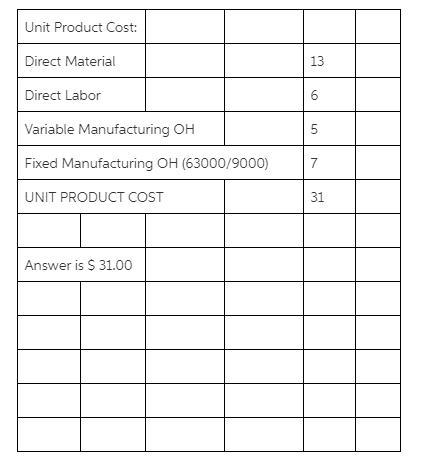 acturing costs: Variable manufacturing cost per unit produced: Direct materials $ 13 Direct labor $ 6 Variable manufacturing overhead $ 5 Fixed manufacturing overhead per year $ 63,000 Selling and administrative expenses: Variable selling and administrative expense per unit sold $ 4 Fixed selling and administrative expense per year $ 71,000 Year 1 Year 2 Units in beginning inventory 0 3,000 Units produced during the year 9,000 7,000 Units sold during the year 6,000 7,000 Units in ending inventory 3,000 3,0000.