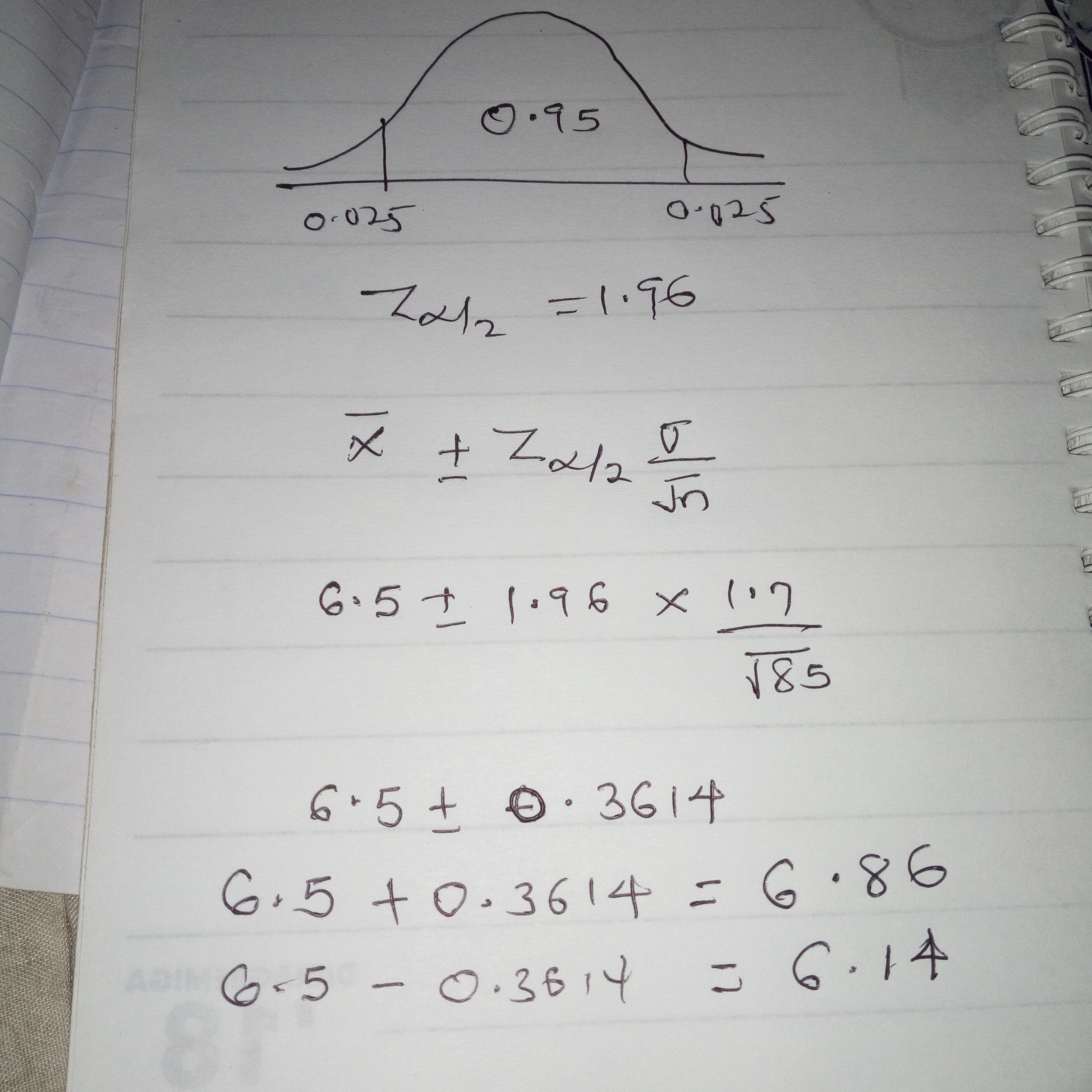 The 95% confidence interval is between 6.14 and 6.86