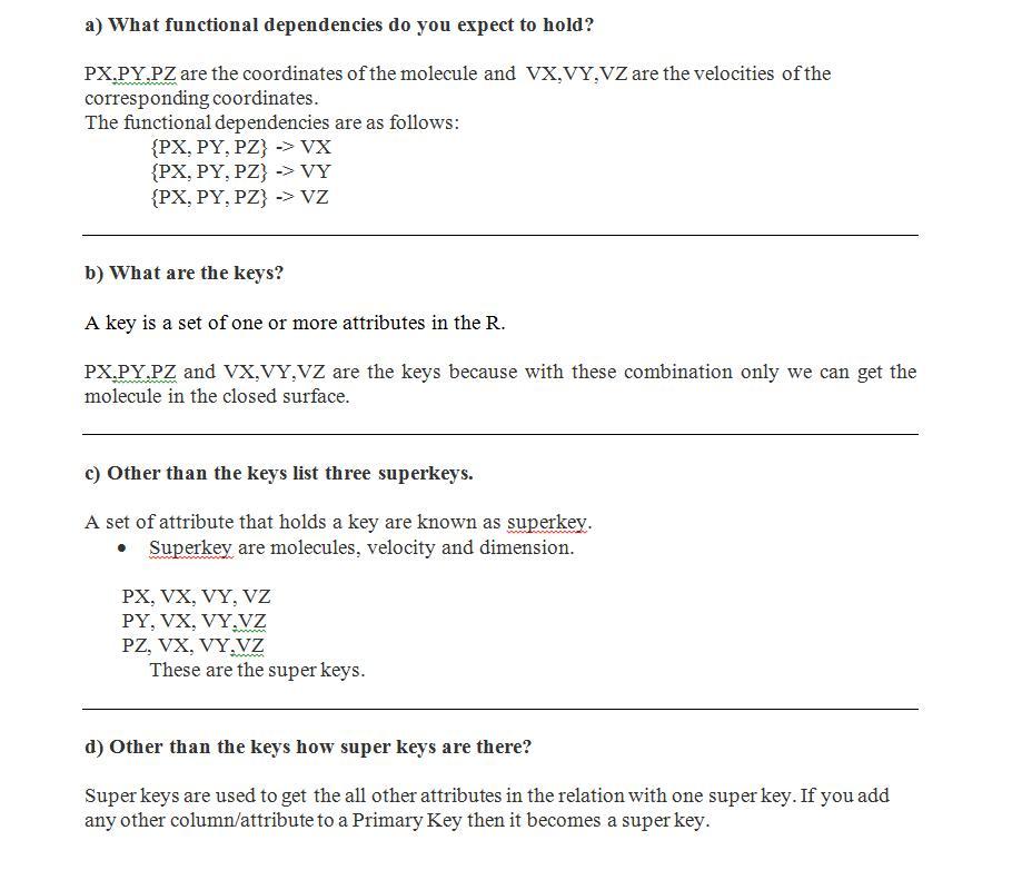 a) What functional dependencies do you expect to hold?