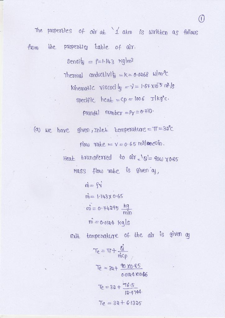 The components in the duct are cooled by forced air which enters at 32°C at a rate of 0.65 m3 /min