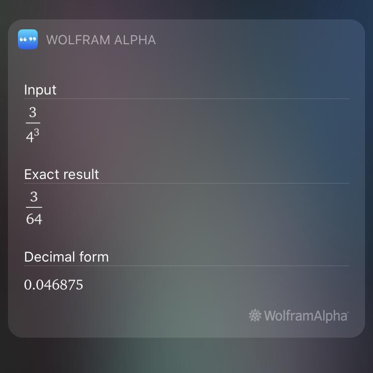 3/4 cubed = 3/64 the answer for decimal form is there too