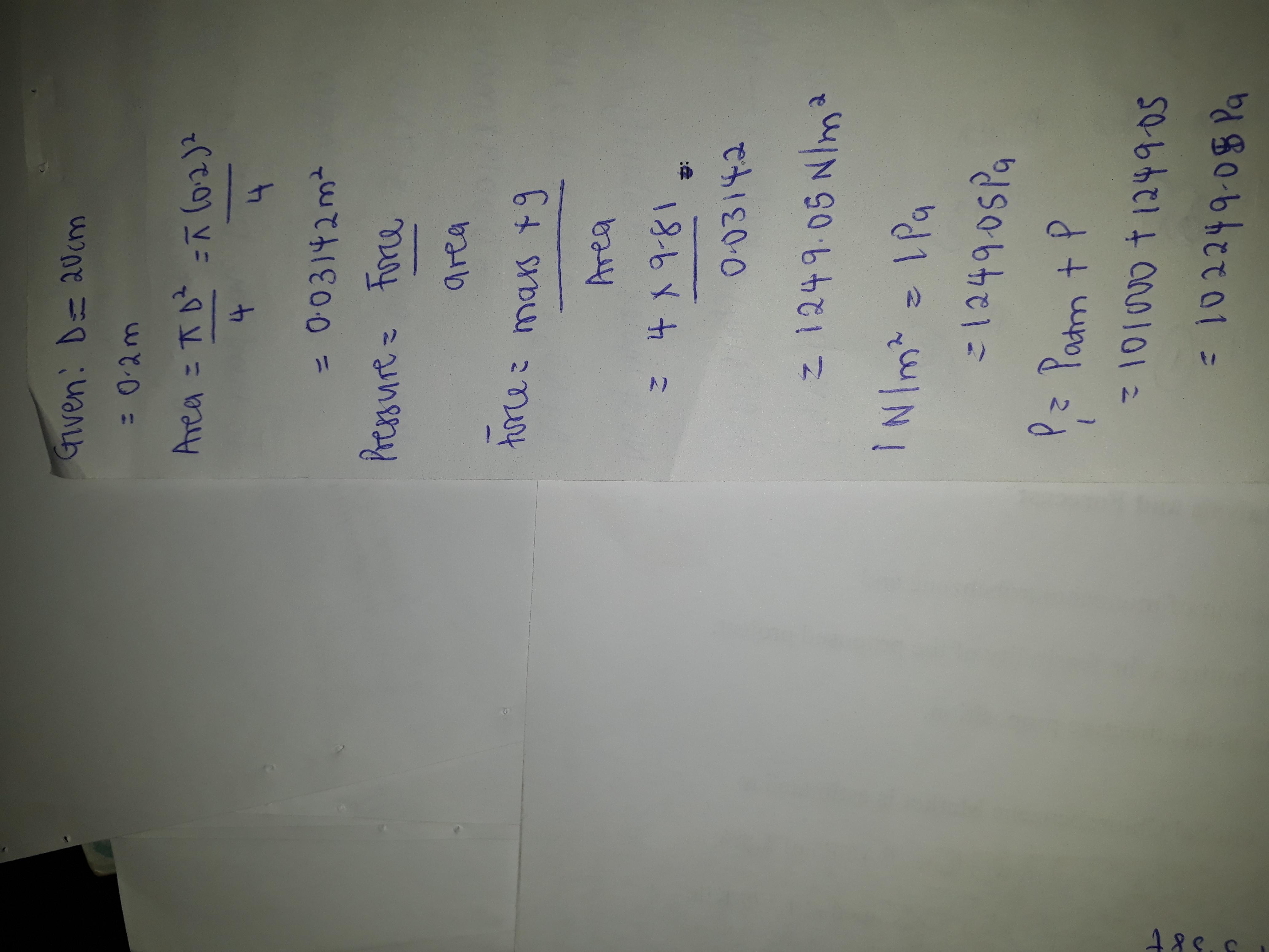 D=20cm=20cm.\frac{1m}{100cm} =0.2m\\A=D^2\pi /4\\p_{l} =W/A=\frac{m.g}{D^2\pi/4 }