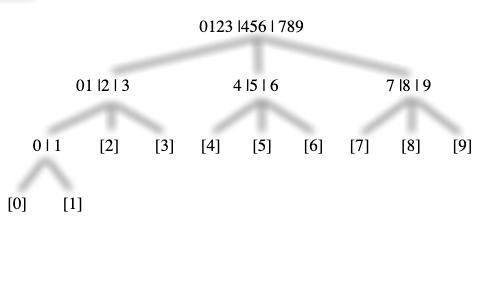 For example 0123|456|789 represented the questionDoes “m: belongs to {0, 1, 2, 3}, to {4, 5, 6}, or to {7, 8, 9}?"