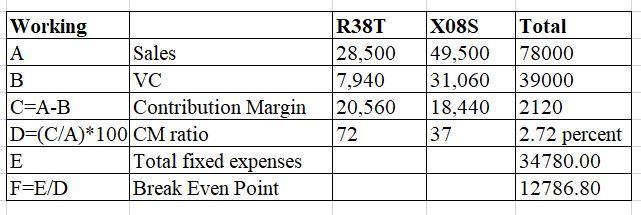 Variable expenses of R38T and X08S is $7940 and $31060 respectively