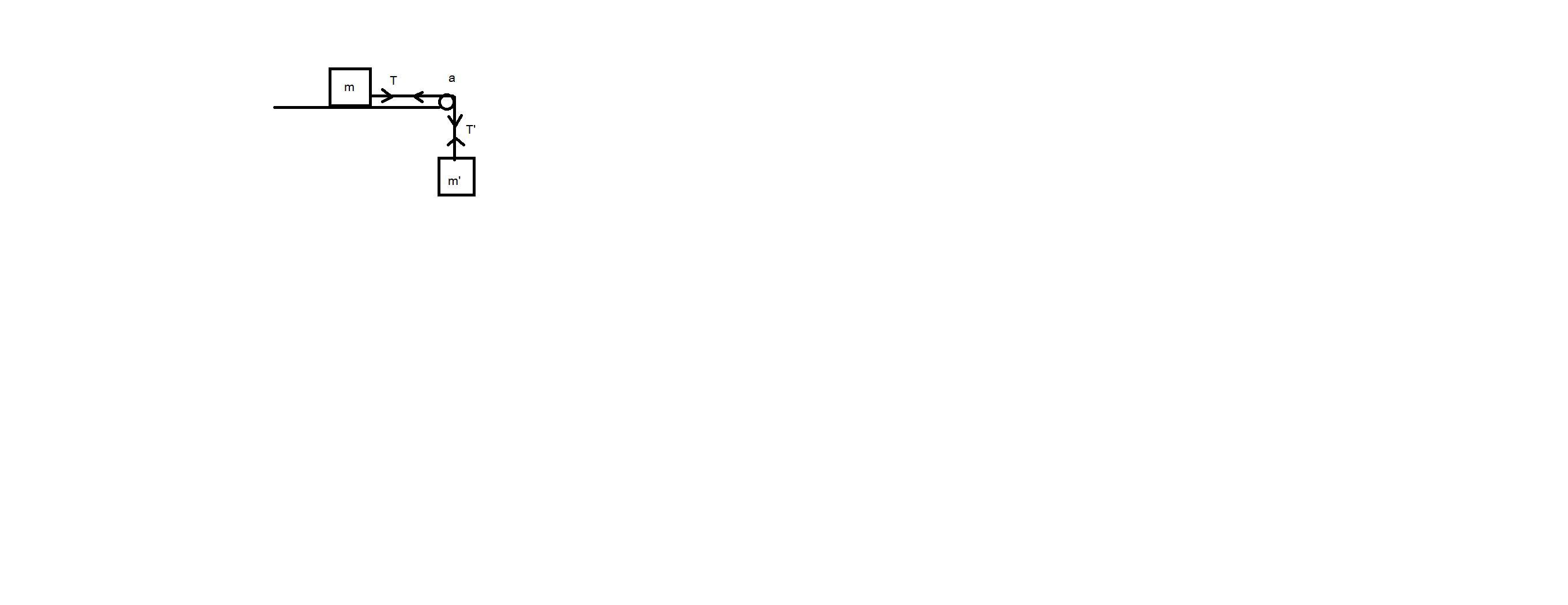 Let a be the acceleration of the system and T and T' is the tension in the string which is horizontal and vertical respectively.
