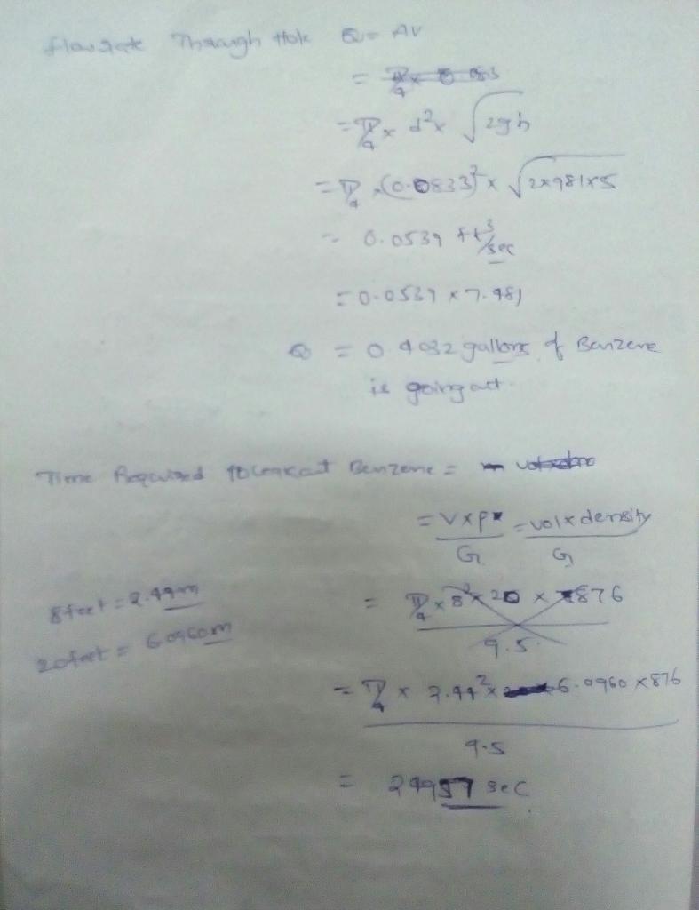 4-6. A vertical cylindrical storage vessel is 10 m high and 2 m in diameter. The vessel contains liquid cyclohexane currently at a liquid level of 8 m. The vessel is vented to the atmosphere. A 1-cm-diameter hole develops in the bottom of the vessel. Calculate and plot the discharge rate of cyclohexane as a function of time until the vessel is completely empty. Show that the time to empty is the same as the time calculated using Equation 4-21.