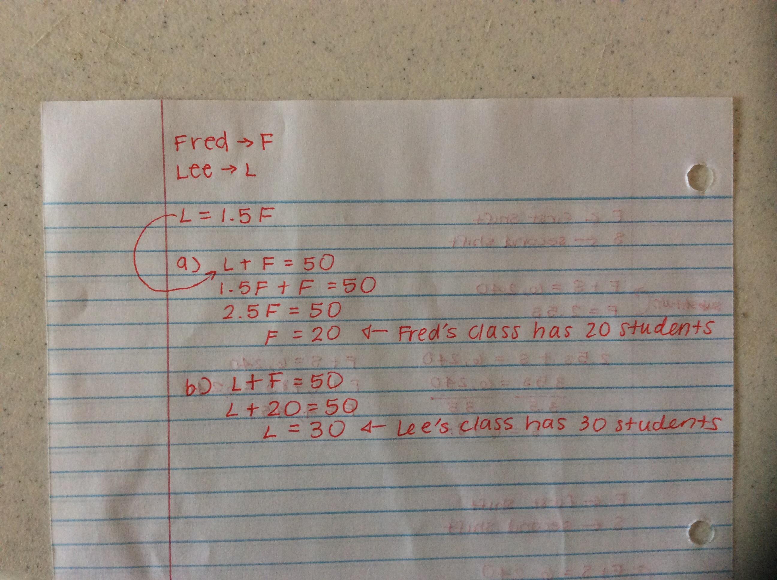 a. If there are a total of 50 students, how many students does Fred’s class have? (Round your answer to the nearest whole number.)