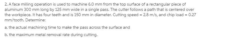 Now in order to obtain the actual machining time to make the pass across the surface