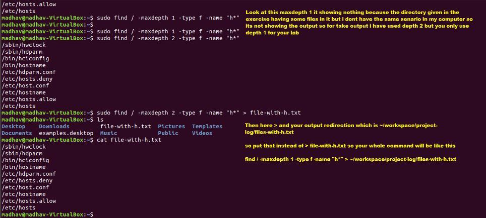 The scripts to execute these two cammad in the question is in the attached images below, and kindly note that output that is displayed on my pc that might be different from that of yours since the directory they have given is not present here in my VM (virtual machine).