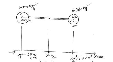 The difference in distance between the Center of gravity of the rod and that of the combined object is  X_{C.G} = -3.4915  cm