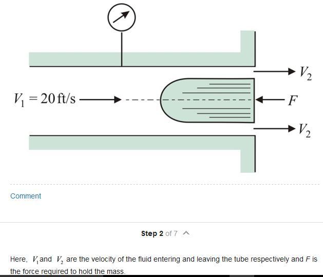 held in the end of the tube where the water discharges to atmosphere. Neglect frictional effects and assume uniform velocity profiles at each section. Determine (a) the pressure measured by the gage and (b) the force required to hold the body.