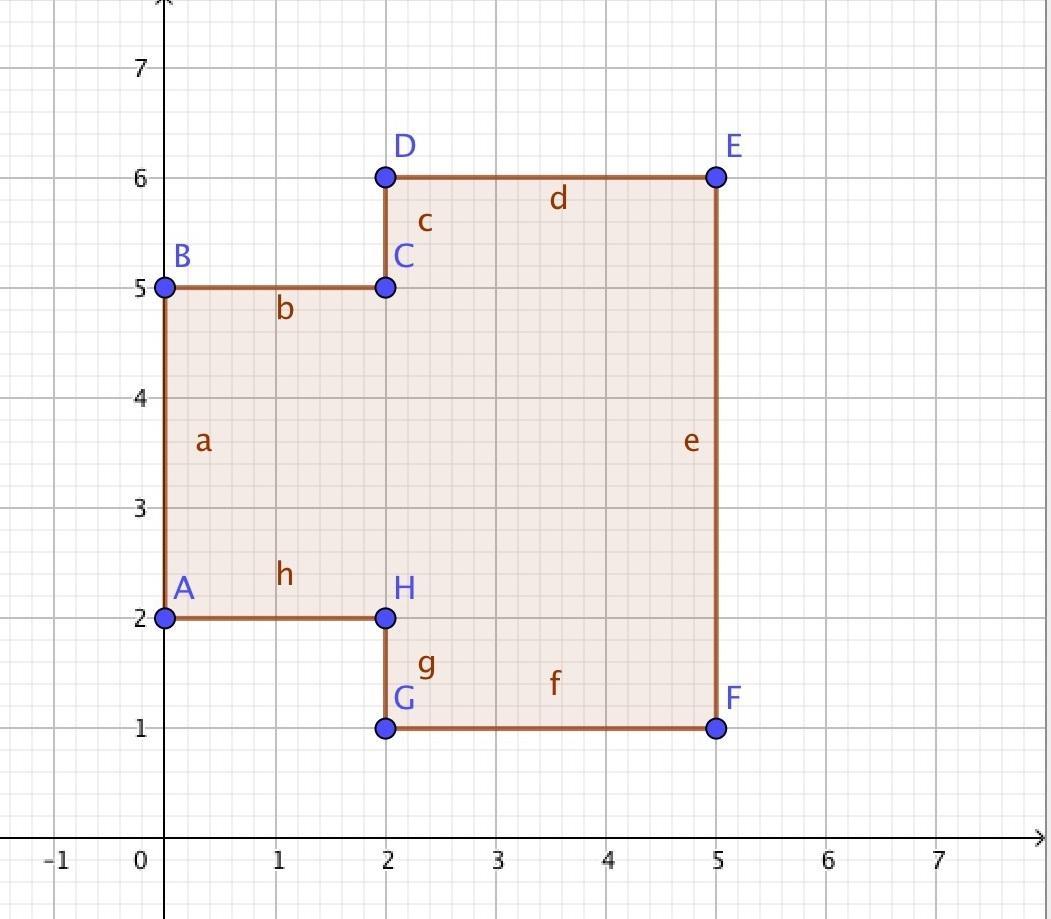 After doing this, we can see that the pool is shaped like two continuous rectangles. We must calculate the area of each and add them to obtain the value of the total area of the pool.