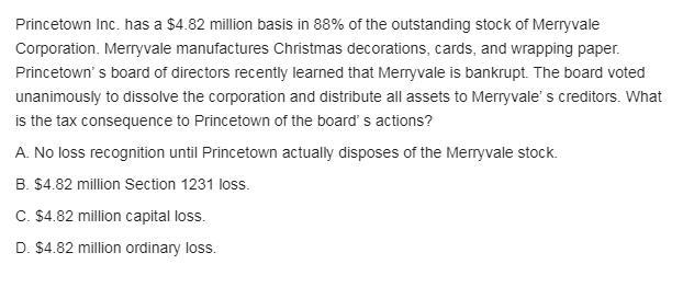 Princetown Inc. has a $4.82 million basis in 68% of the outstanding stock of Merryvale Corporation. Merryvale manufactures Chris