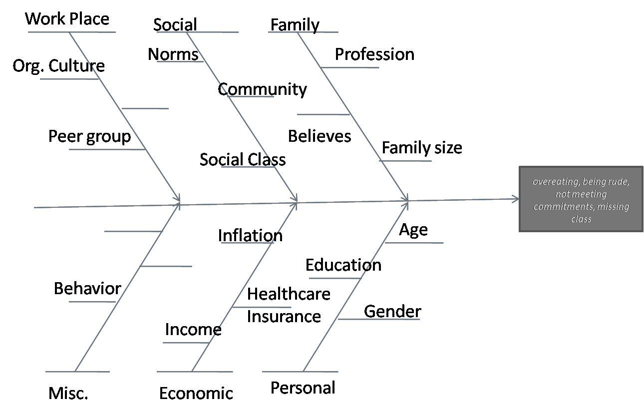 e (such as overeating, being rude, not meeting commitments, missing class, etc.). Use the check sheet to keep a record of these "defects" for one month. Use a Pareto chart to analyze these data. What are the underlying causes of these "defects"?