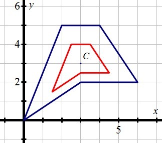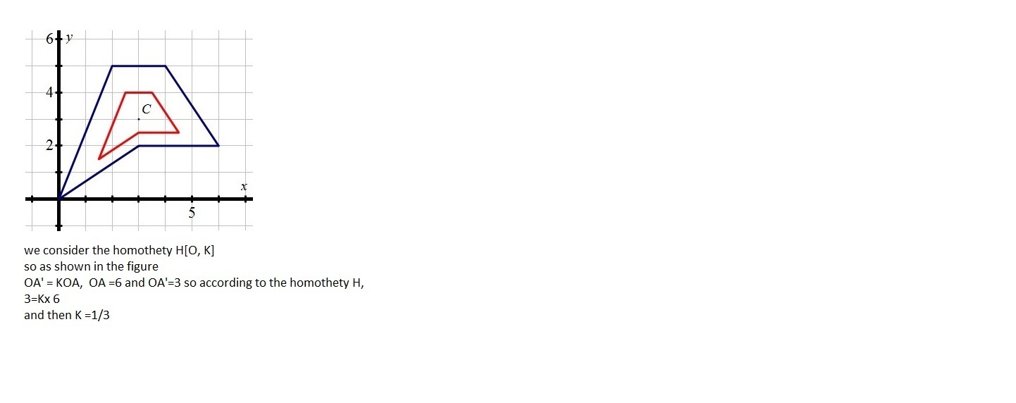 The distance of the image segment is 1/2 of the distance of the pre-image segment; this means the scale factor is 1/2.