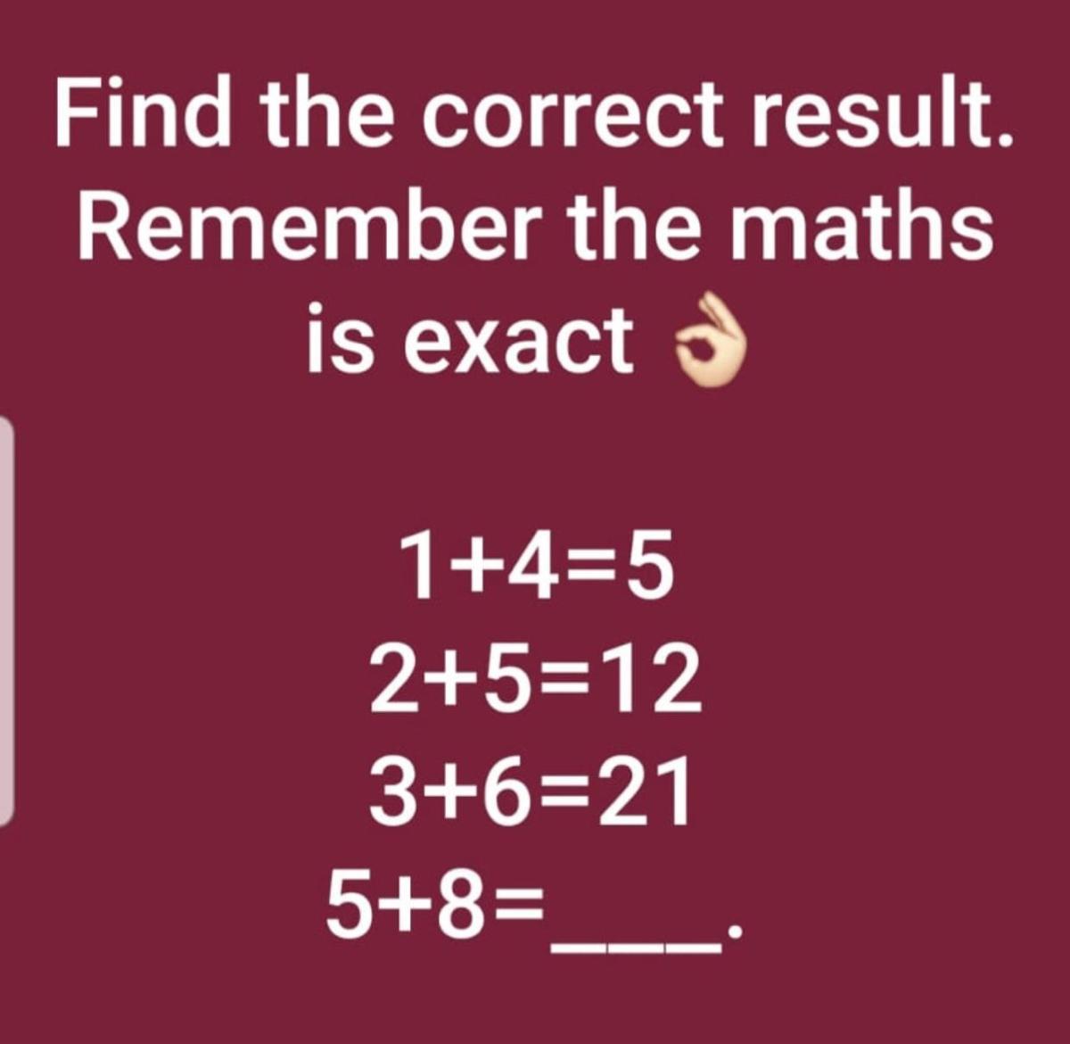 1+4=5 2+5=12 3+6=21 5+8=