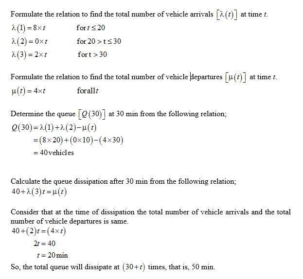 "Vehicles begin to arrive at a parking lot at 6:00 A.M. at a rate of eight per minute. Due to an accident on the access highway,