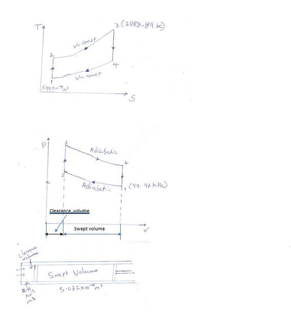 The clearance volume = 16% of cylinder volume = 0.16×5.99×10⁻⁴ m³