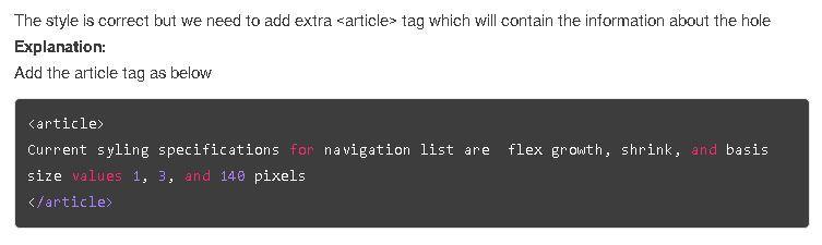 ation about the current hole. Add a style rule that sets the flex growth, shrink, and basis size values of the hole_list navigation list to 1, 3, and 140 pixels.