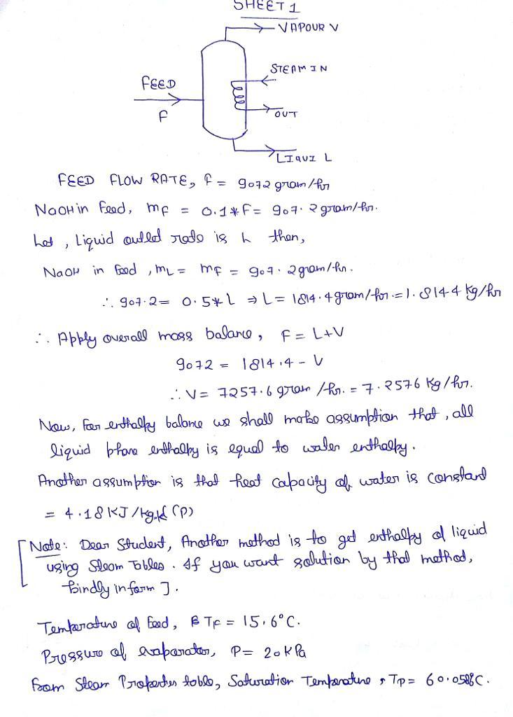 Going by the question above for parta, the feed flow rate is stated to be 9072g/hr.& result is offered for part a considering the same. if the unit is kg/hr, then kindly let me know & i shall make slight modification that might be required in solution which in that case, area & steam consumption answer shall differ.