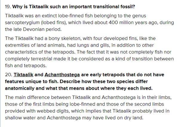 18. Acanthostega and Icythyostega have been called fish-like tetrapods. Explain why they are described as such and describe the environment in which they probably lived.